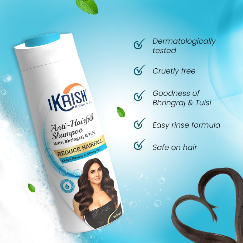 Ikrish Anti-Hairfall Shampoo with Bhringraj & Tulsi, reduce hairfall keeps healthy & strong Hair.