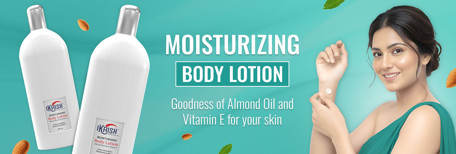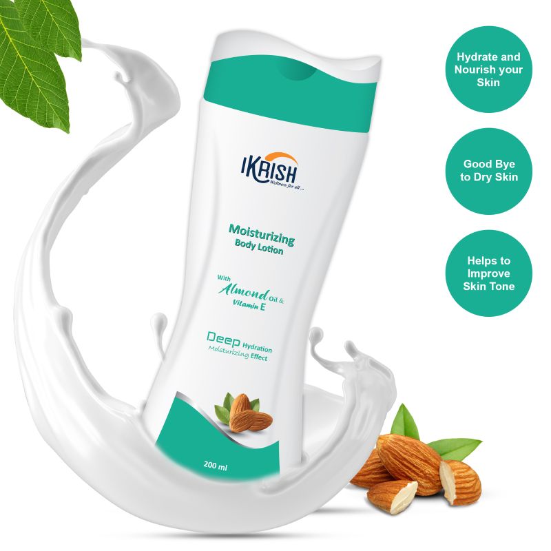 Experience the ultimate hydration with Ikrish Moisturizing Body Lotion. Infused with the goodness of Almond Oil and Vitamin E, it's your secret to soft, nourished skin.