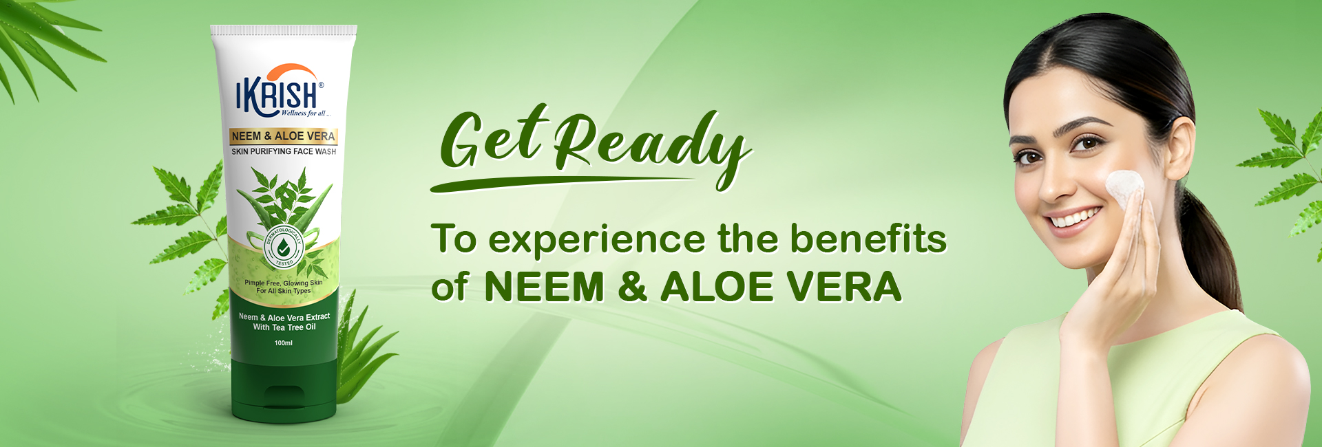 Ikrish Neem & Aloe Vera skin purifying face wash is 100% soap free formula. It is enriched with Neem extract & Aloe Vera extract. Tea tree oil prevents acne & pimples and deep cleanses all impurities from the pores. Skin feels clean, fresh & looks refreshing. Use it to purify your skin with Natural extract of Neem & Aloe Vera.