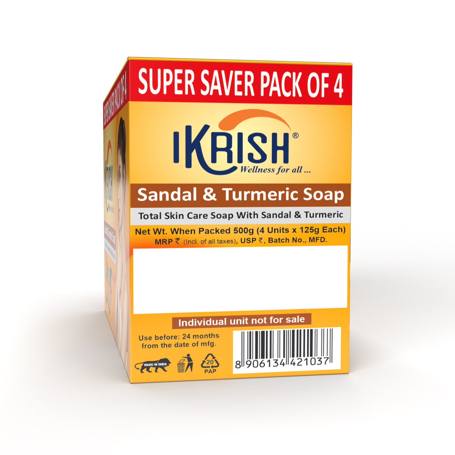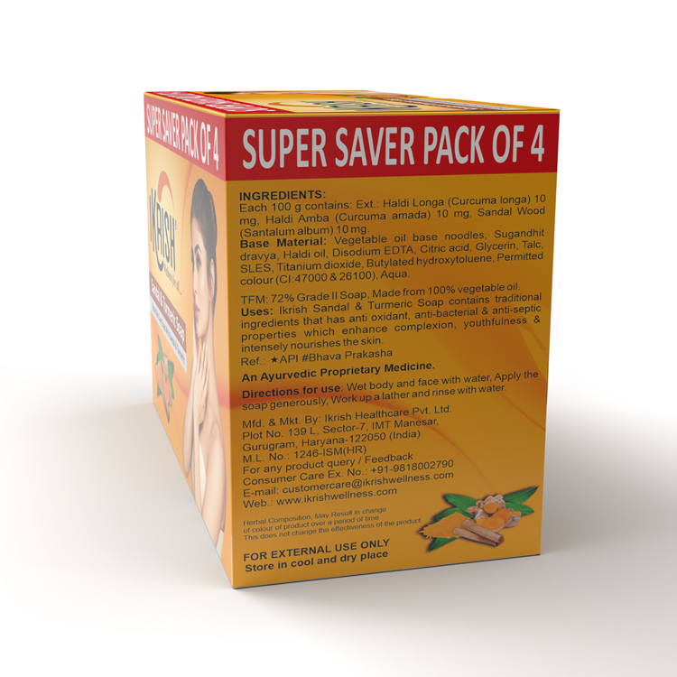 Ikrish Sandal & Turmeric Soap contains traditional ingredients that has anti-oxidant, anti-bacterial & anti-septic properties which enhance complexion, youthfulness & intensely nourishes the skin.